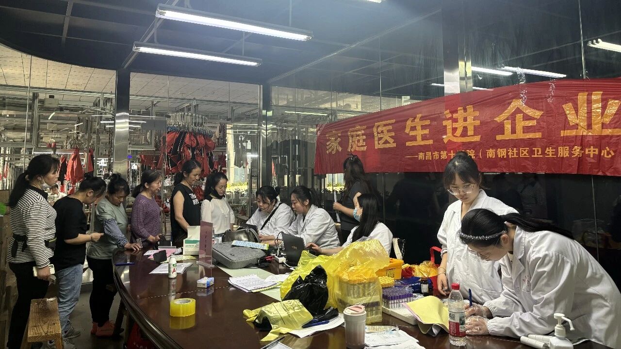 服务进企业,家医守护职工健康。南昌市第十医院(南钢社区卫生服务中心)家庭医生服务团队走进南昌华兴针织实业有限公司,开展家庭医生签约宣传、国家基本公共卫生服务项目免费检查及城市癌症早期筛查项目,精准助力企业职工提升健康管理水平。活动中,家庭医生团队通过悬挂横幅、设立咨询台、发放宣传手册、现场讲解等方式,详细普及家庭医生签约服务政策、内容、流程及惠民优势,并特邀江西省妇幼保健院专家提供技术支持。