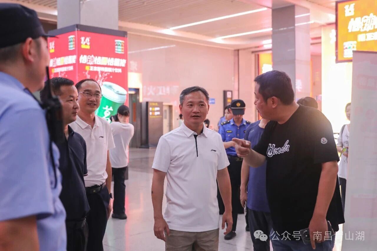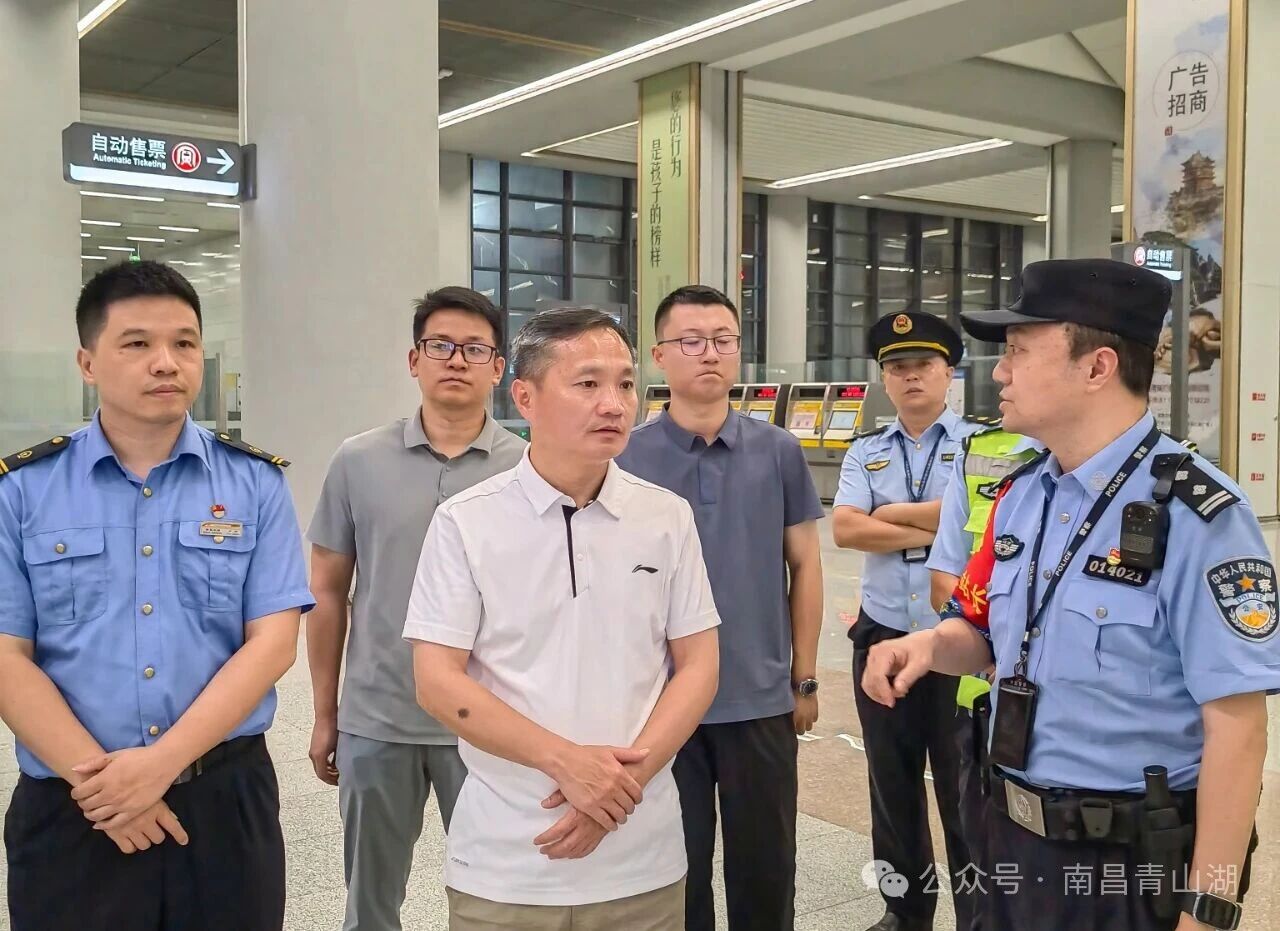 杨育星先后来到南昌火车站东广场、南昌东站等地,实地察看了各站点客流组织、秩序维护、应急处突等工作的实际开展情况,并与站点管理方及相关部门负责同志深入交流,详细了解了国庆中秋“双节”假日期间运力保障、服务供给、安全措施落实等具体工作安排。