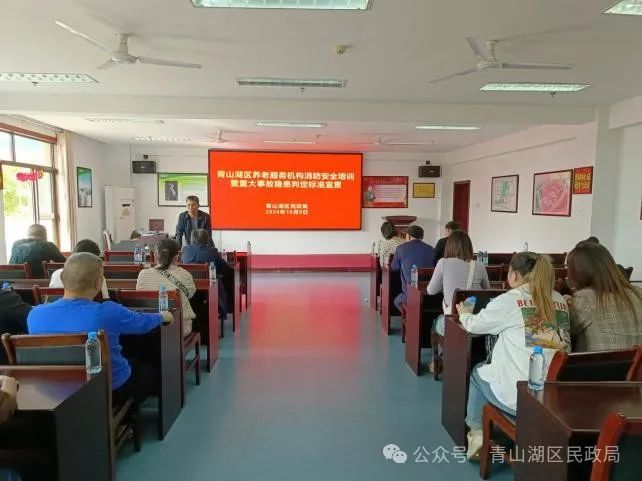 为做好全区养老服务机构安全生产工作,提高各养老服务机构消防安全管理水平,防范各类安全事故的发生,保障全区养老服务机构安全稳定。2024年10月9日上午,区民政局组织全区各养老服务机构负责人和消防安全管理人员开展“落实消防安全检查责任,切实消除突出隐患风险”为主题的消防安全专题培训,并开展了养老机构及重大事故隐患判定标准宣贯。
