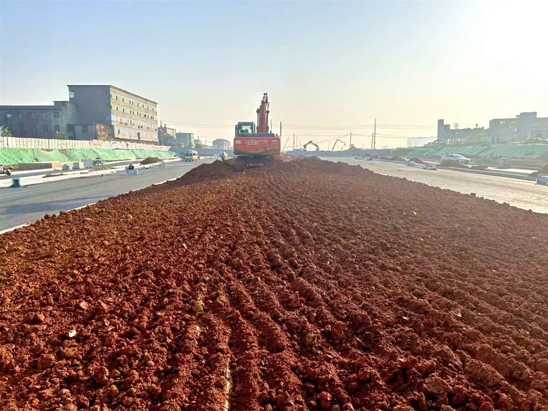 中央绿化带绿化土平整