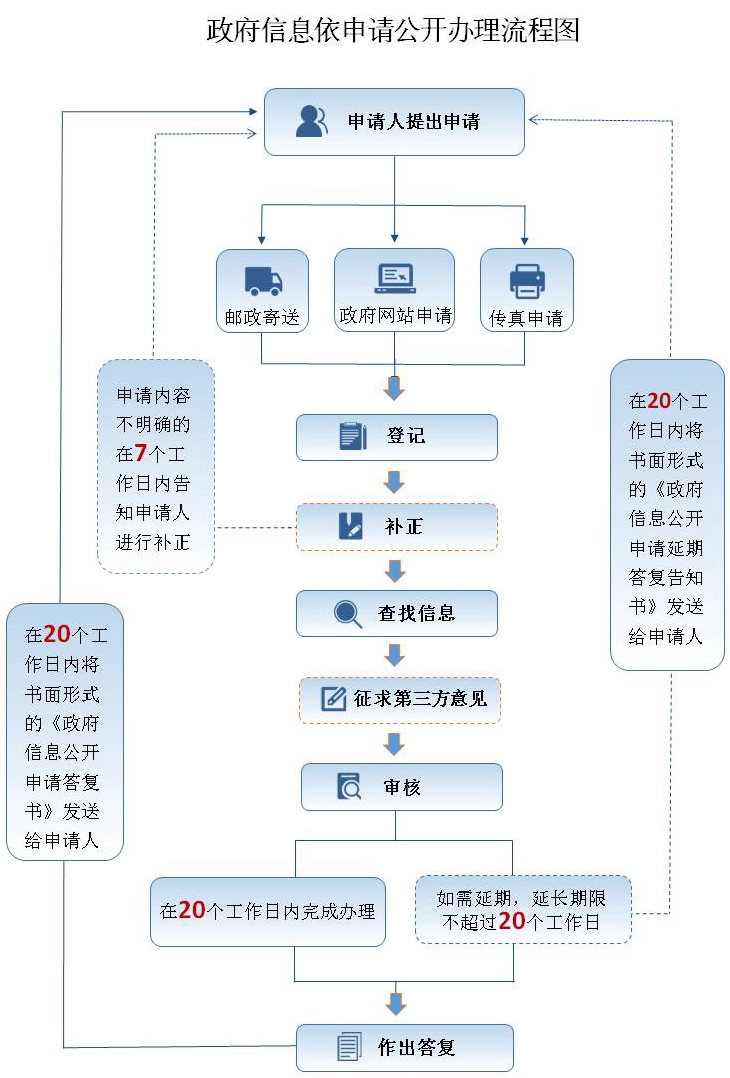 2、本机关将自收到申请之日起20个工作日内作出申请答复(一般情况下不超过14个工作日)。需要延长答复期限的,本机关会在答复期限内告知申请人,延长的期限不超过20个工作日(一般情况下不超过14个工作日)。